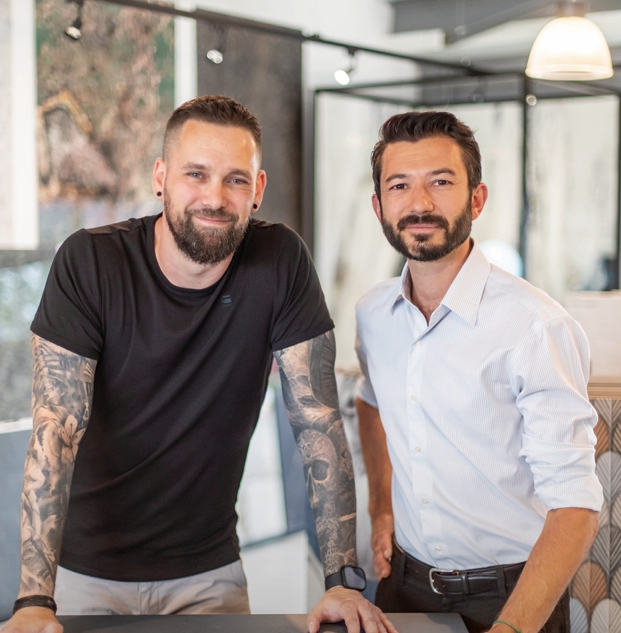 DÈS QU’ON ÉVOQUE LE MOT CARRELAGE, ON PENSE IMMÉDIATEMENT À GABRIELI CARRELAGES. AUJOURD’HUI, LE GROUPE ENRICHIT SON SAVOIR-FAIRE EN ACCUEILLANT CHRISTOPHE TERRAND COMME RESPONSABLE COMMERCIAL, VENU ÉPAULER RAPHAËL GYSELINCK, RESPONSABLE DU SHOWROOM DE THONON. NOUS LES AVONS RENCONTRÉS POUR L’OCCASION.